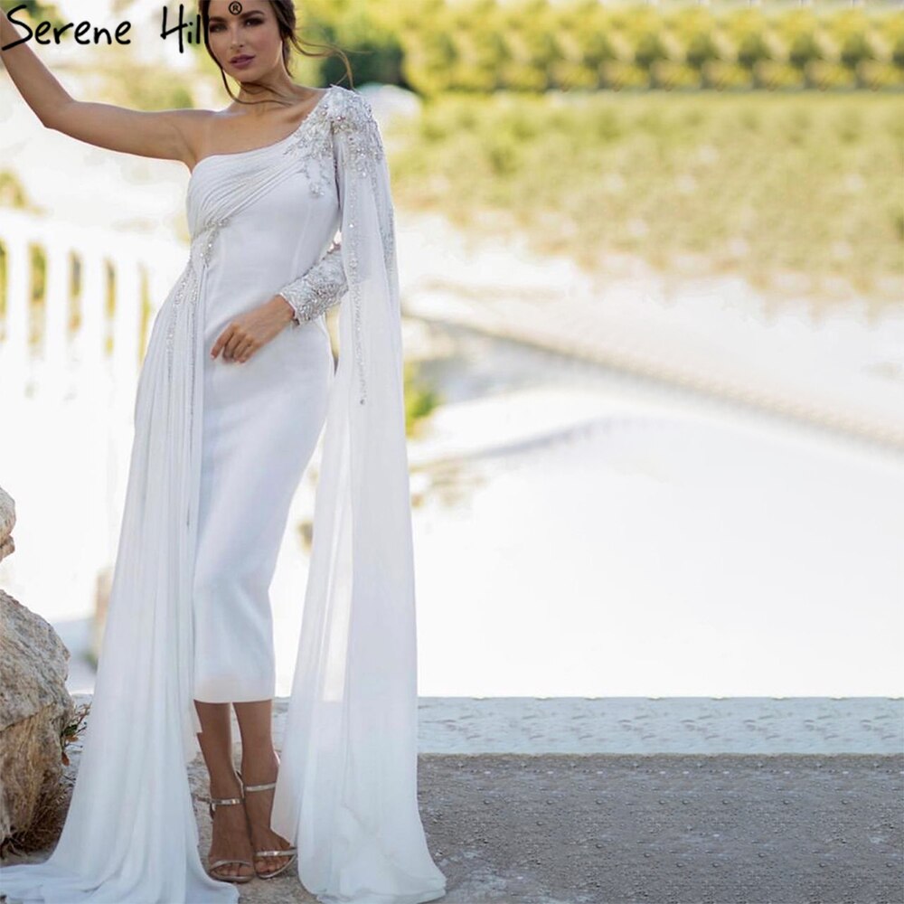Vestidos de noche de satén blanco con un solo hombro, corte sirena, elegantes y sexys, para mujer, para fiesta, LA70711