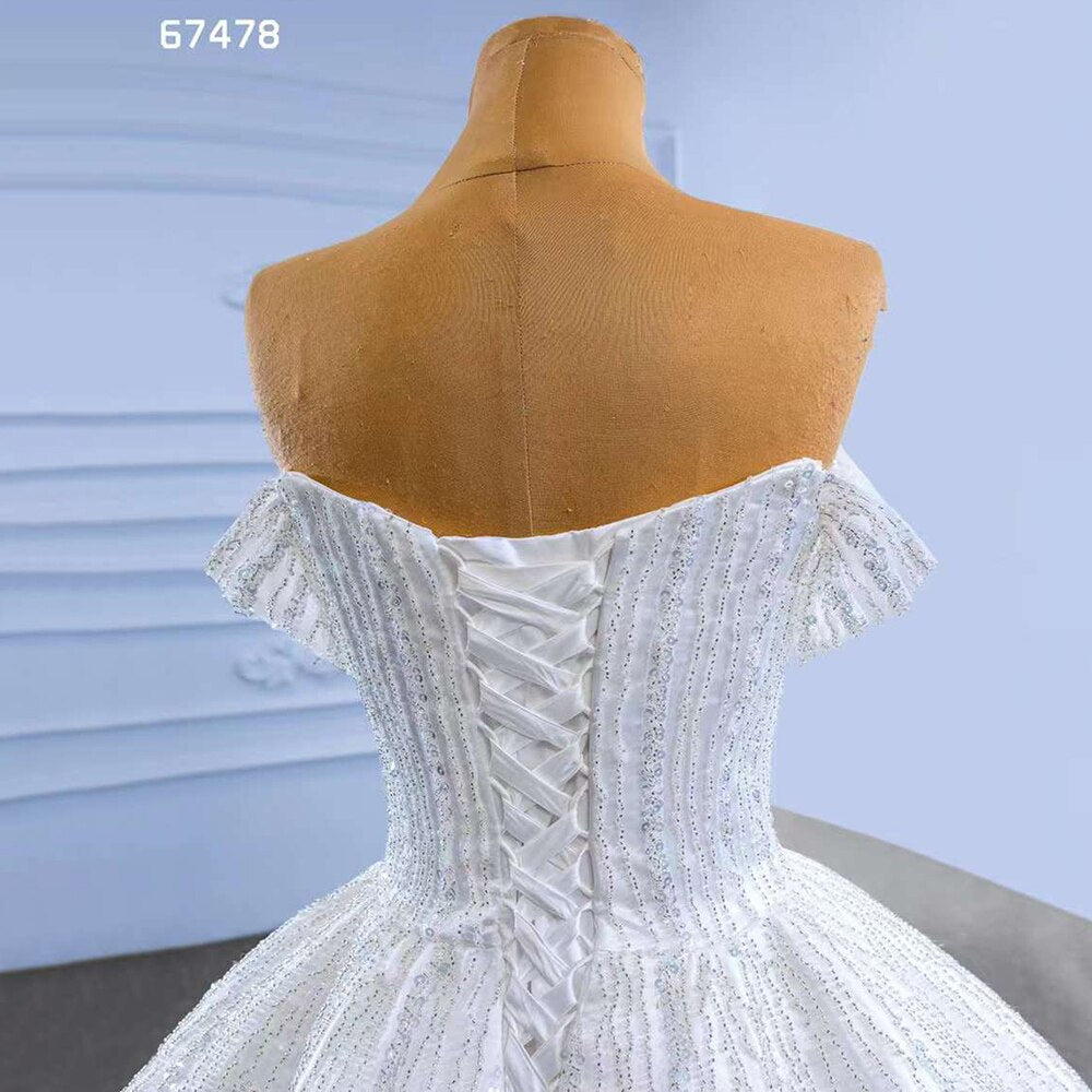 Vestido de novia blanco sexy con hombros descubiertos, encaje y cuentas de lujo, 2025, alta gama, hecho a medida, HM67478