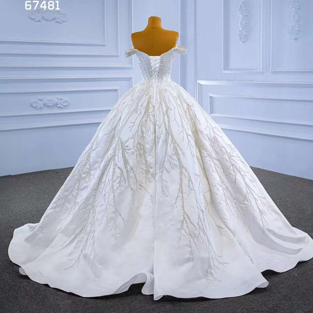 Vestido de novia blanco sexy con hombros descubiertos, de lujo, con cuentas y cordones, 2025, de alta gama, hecho a medida, HM67481