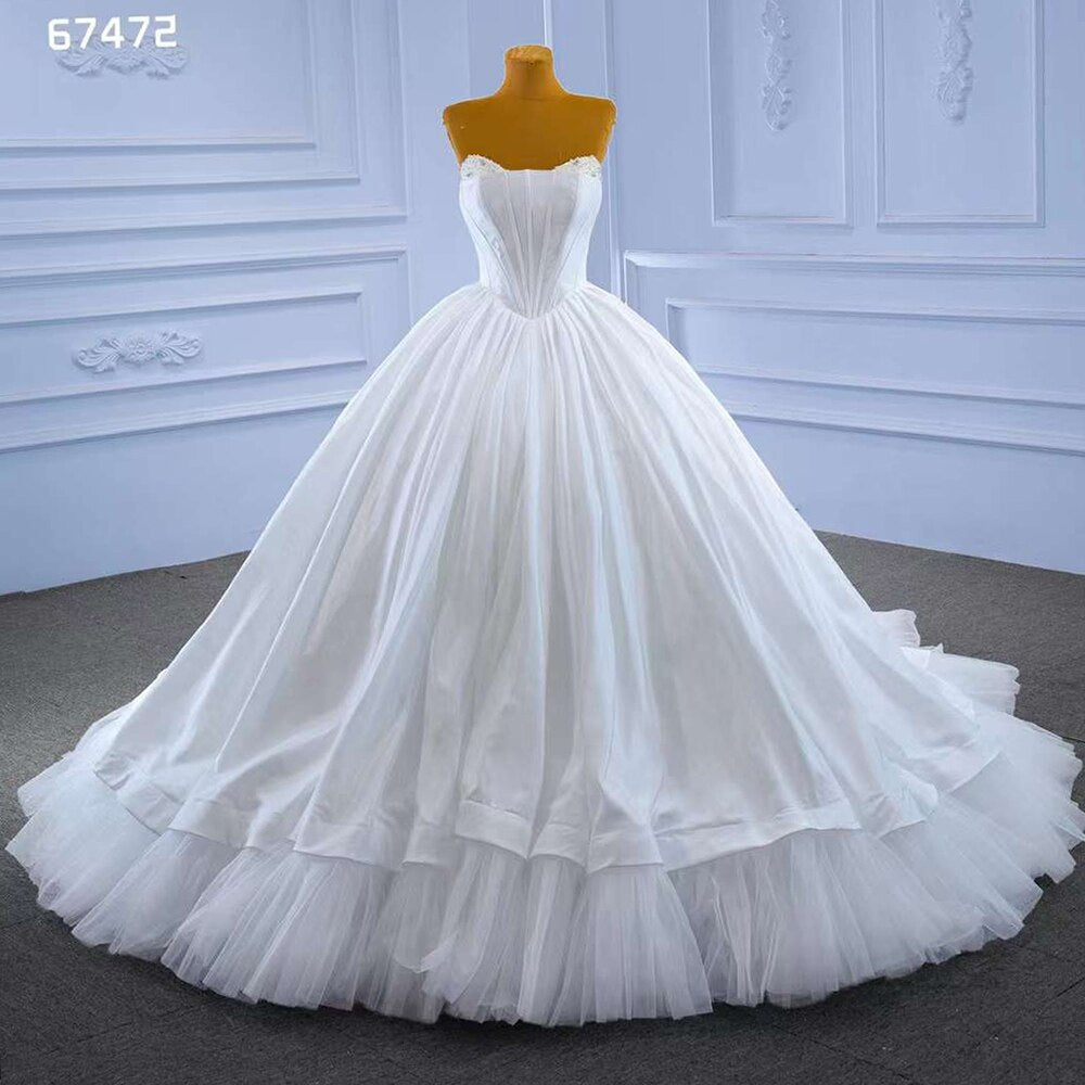 Vestido de novia blanco sexy sin tirantes, con encaje y perlas de lujo, 2025, de alta gama, hecho a medida, HM67472