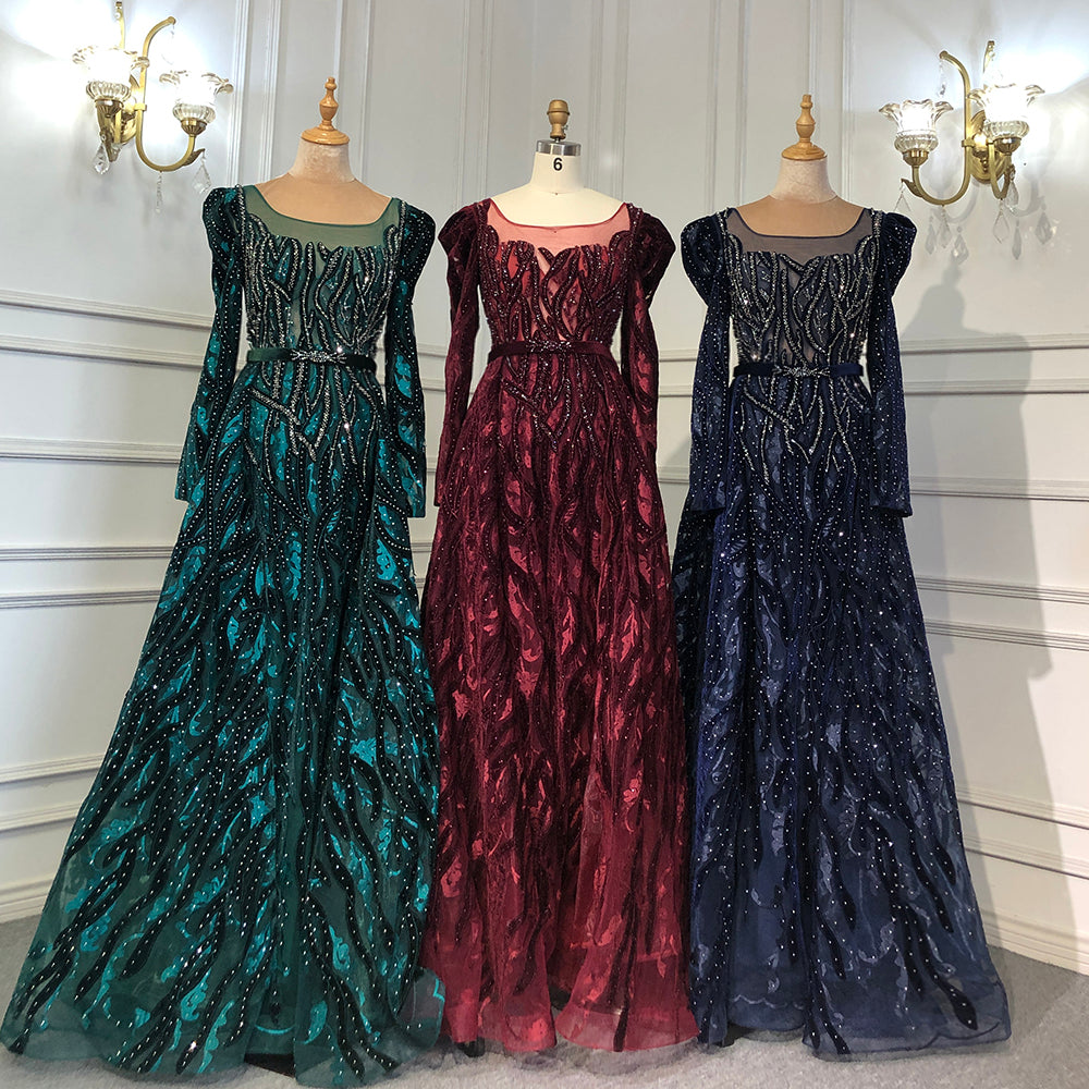 Elegante vestido musulmán de noche de terciopelo con escote sirena color vino tinto, mangas largas, 2025, con cuentas, de lujo, para mujer, fiesta, LA71637