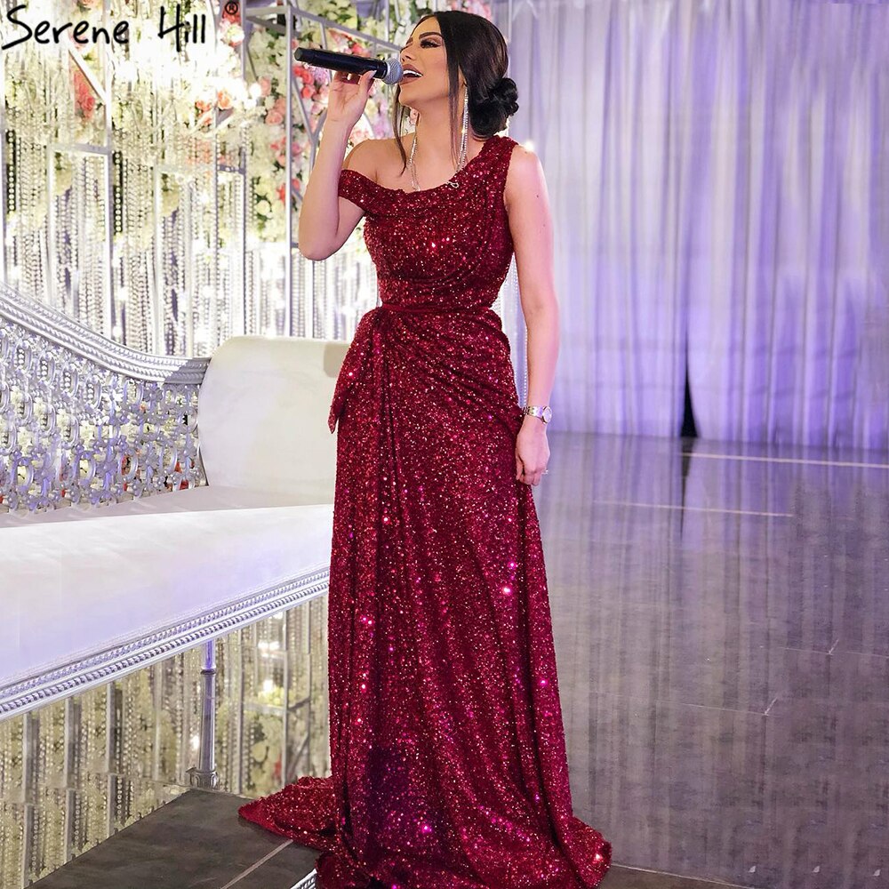 Vestido de noche de lujo rojo vino con abertura en forma de A, vestido de fiesta de un solo hombro, sexy, LA71005