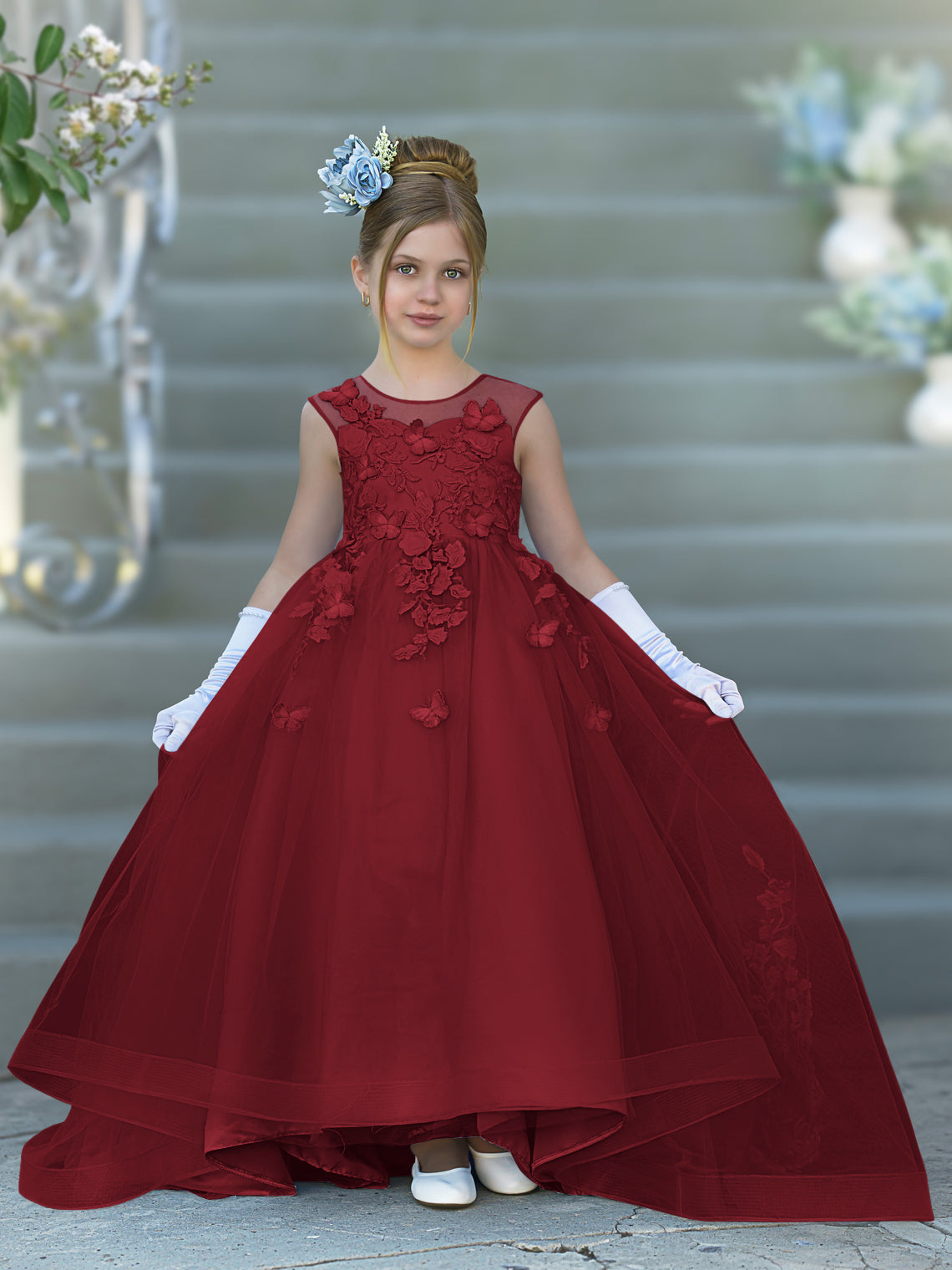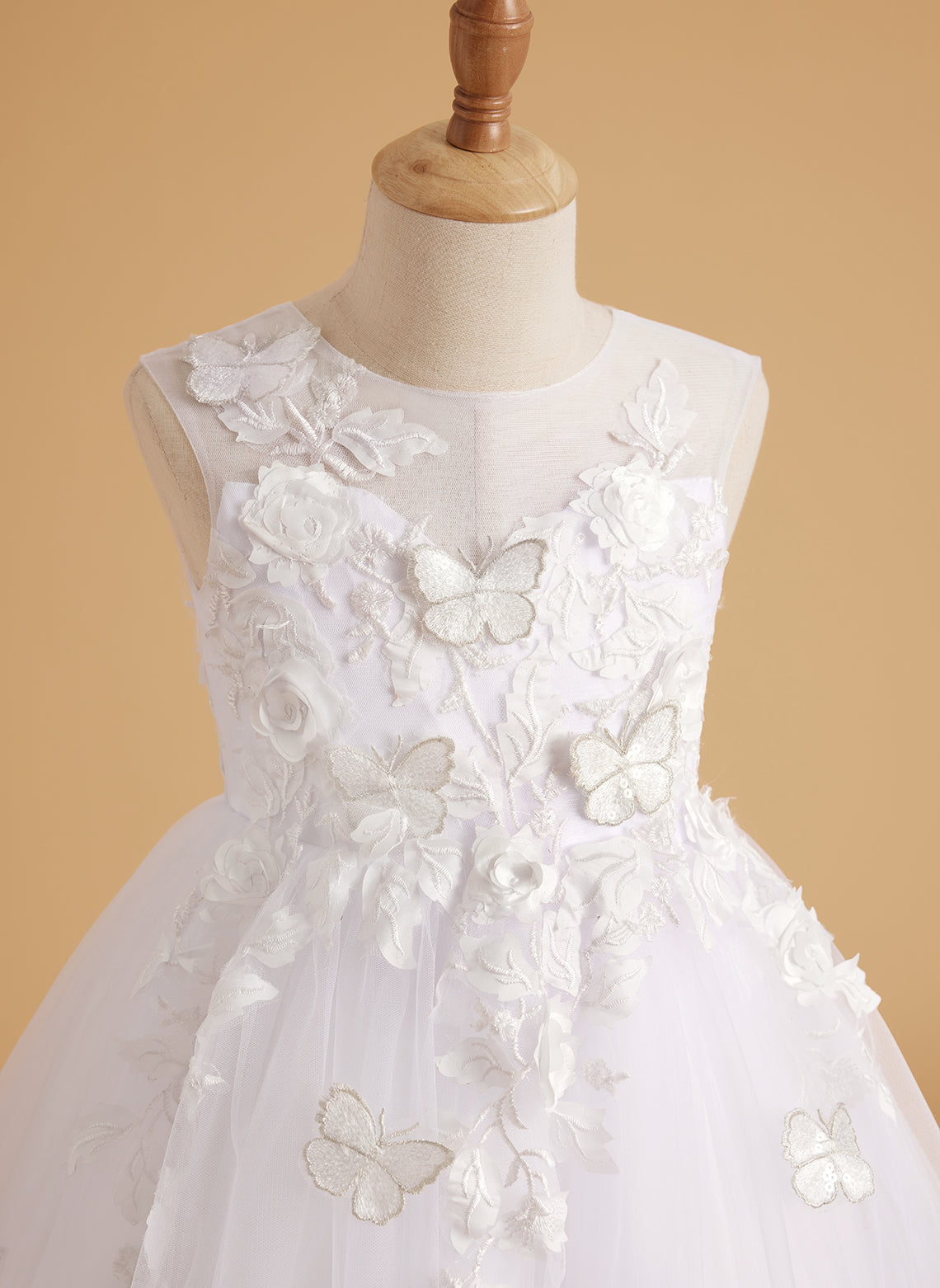 Vestido de baile de princesa Serenity con apliques de encaje y adornos de mariposas