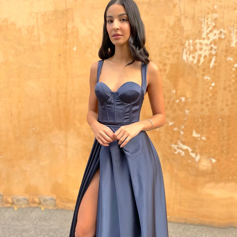 Vestido de noche largo hasta el suelo, de corte A, sin espalda, con tirantes finos y color liso Y4930