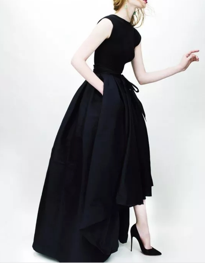 Vestido de fiesta negro sexy, vestido encantador y bonito, vestido de noche sencillo, vestido de fiesta formal con cuello redondo S19670