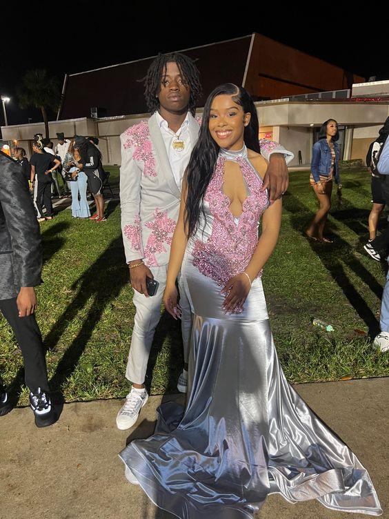 Vestido de noche de sirena gris sexy con cola, vestido de gala Y6722