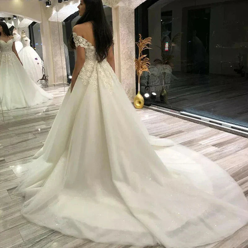 Vestido De novia De encaje con hombros descubiertos, traje Vintage De corte en A para mujer, vestido De novia Sexy, Vestidos De Fiesta