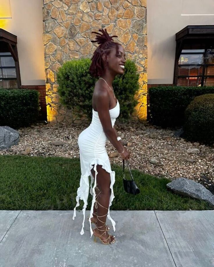 Vestido de noche blanco sexy sin tirantes con volantes, ideal para cumpleaños (Y7945)