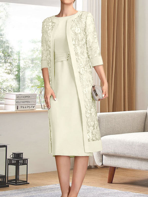 Vestido de gasa corte recto/columna hasta la rodilla para la madre de la novia con lentejuelas plisadas