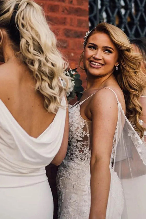 Haz que tu día especial sea aún más especial con este elegante vestido de novia de encaje color marfil con corte sirena. Con un escote impactante y una falda de estilo bohemio, este exquisito vestido de novia para bodas en la playa sin duda...