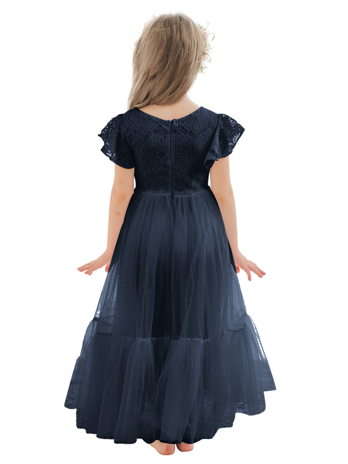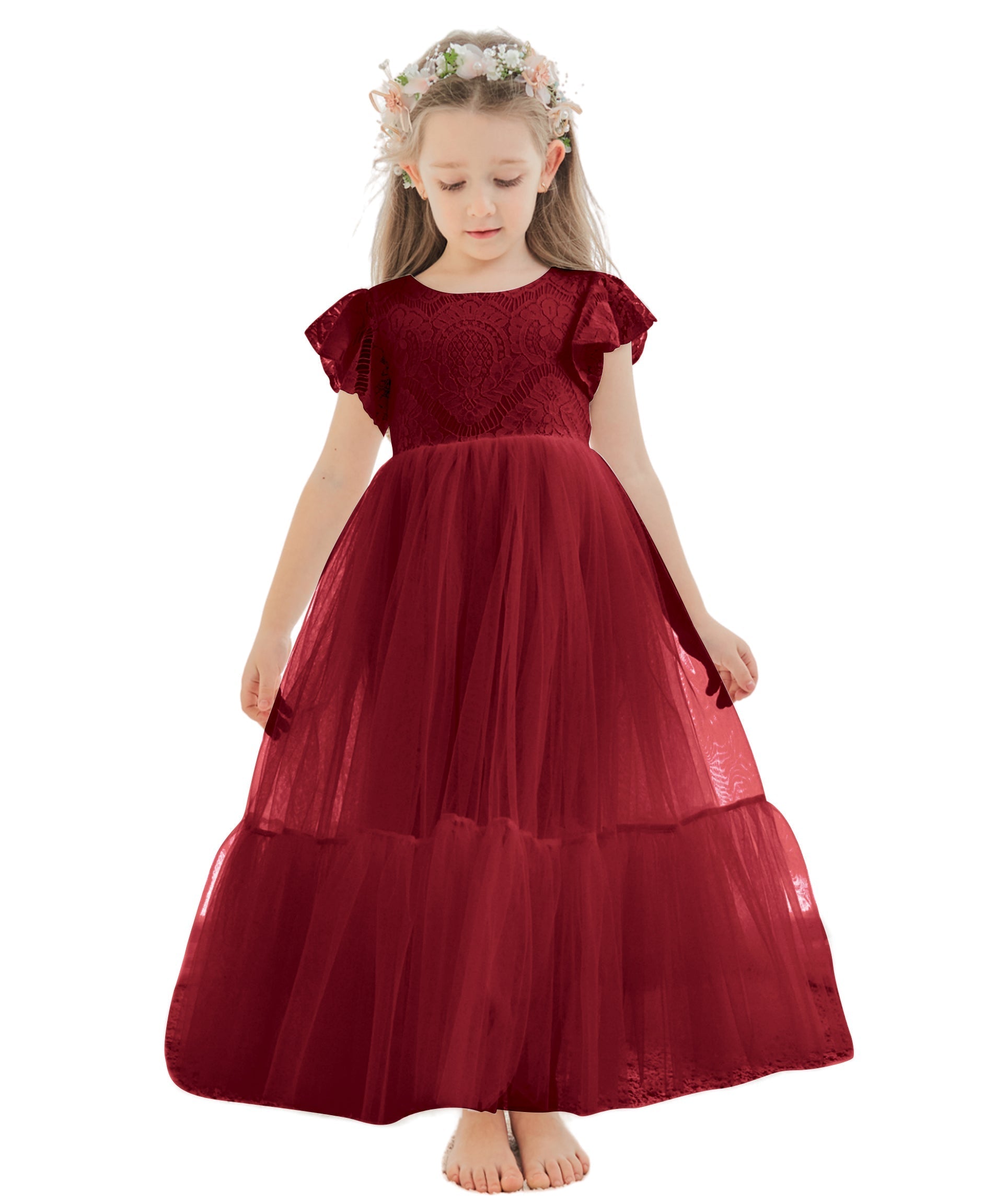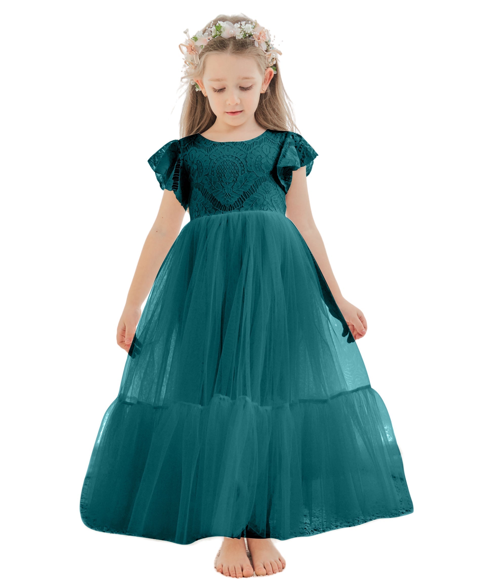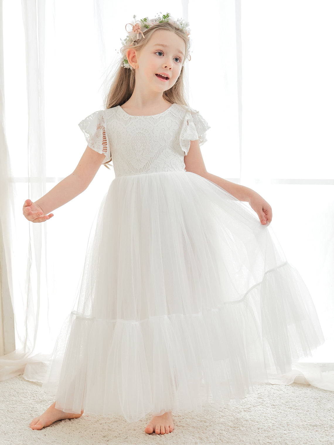 Vestido blanco de tul y encaje hasta el tobillo (2003227579)