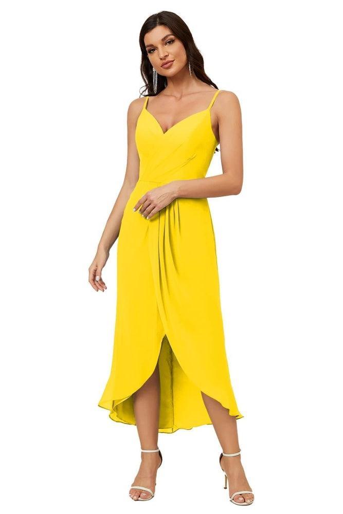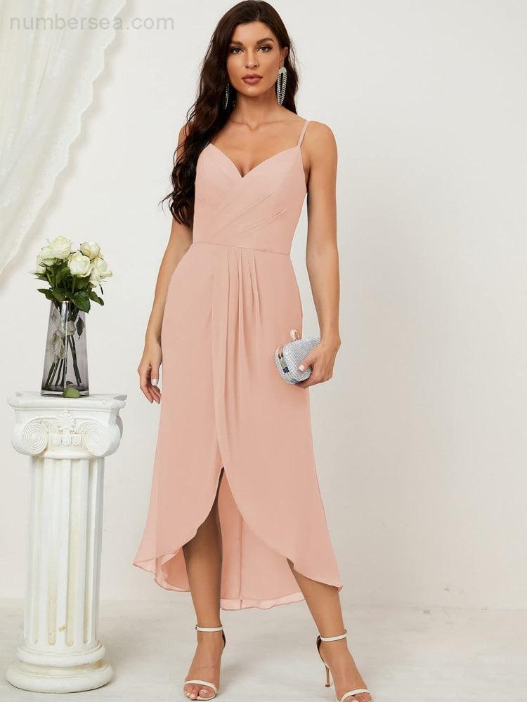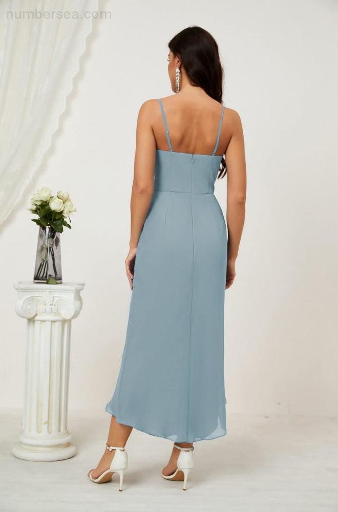Vestido de dama de honor de gasa con escote en V y abertura media, vestido formal de fiesta, vestido de bienvenida 2803