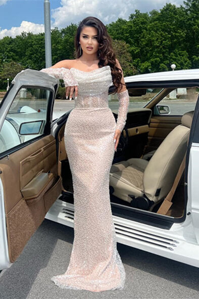 Escote: Sin tirantes Silueta: Sirena Largo de manga: Con guantes Adorno: Lentejuelas Tela: Lentejuelas