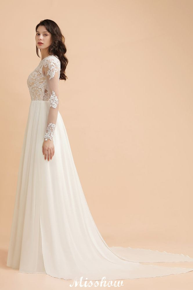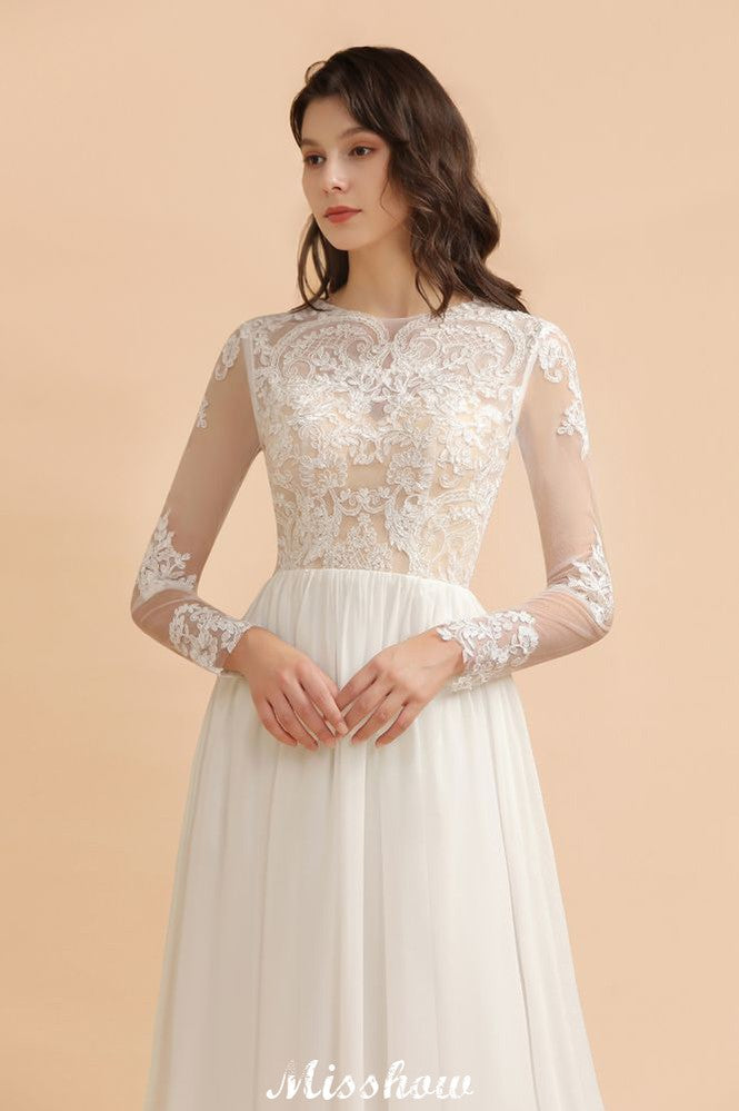 Catálogo: Vestidos de novia Código del artículo: D160111272299518 Sujetador incorporado: Sí Espacios: Playa / Destino.Iglesia.Jardín / Salón al aire libre Detalles de la espalda: Botón. Cremallera. Temporada: Cuatro estaciones Escote: Joya Material: Gasa 100D.Tul Silueta: Línea A Tipo de cuerpo: Señorita Largo de manga: Manga larga Cintura: Natural Largo del dobladillo: Hasta el suelo Embellecimiento: Encaje.Apliques.Volantes