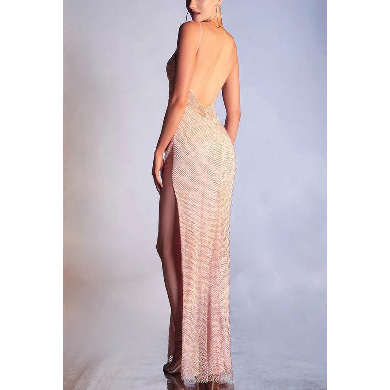 Vestido de noche largo de fiesta con escote corazón, tirantes finos, espalda descubierta y lentejuelas