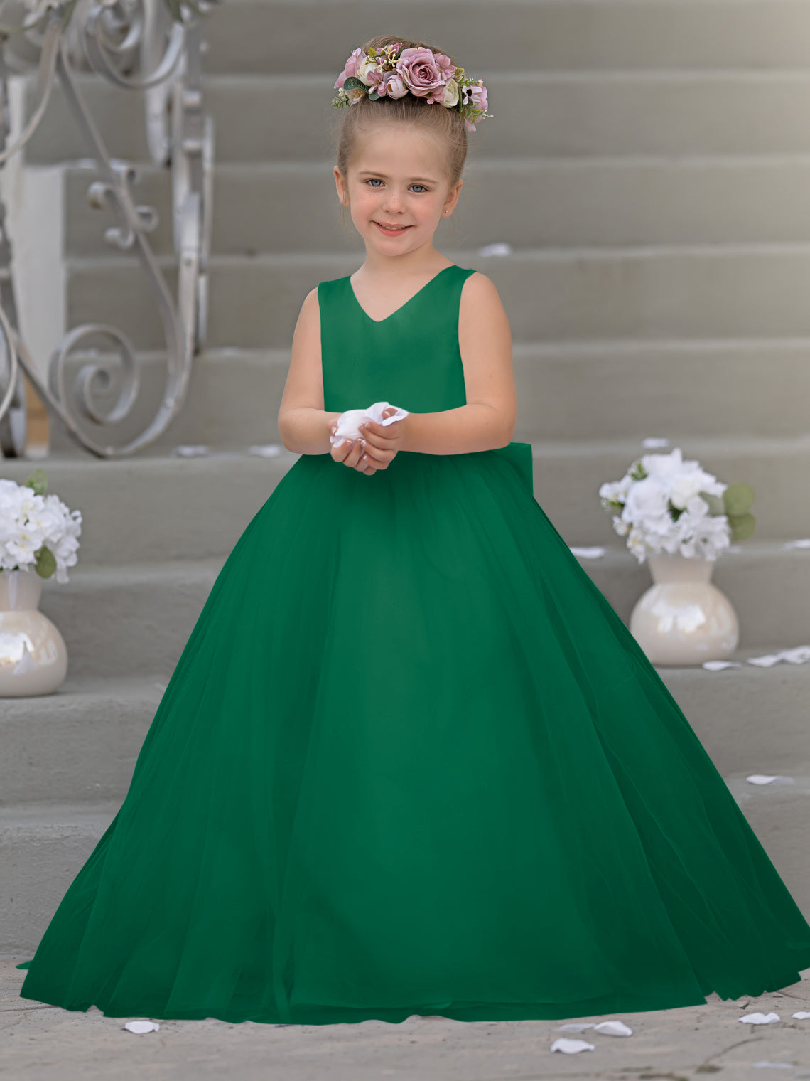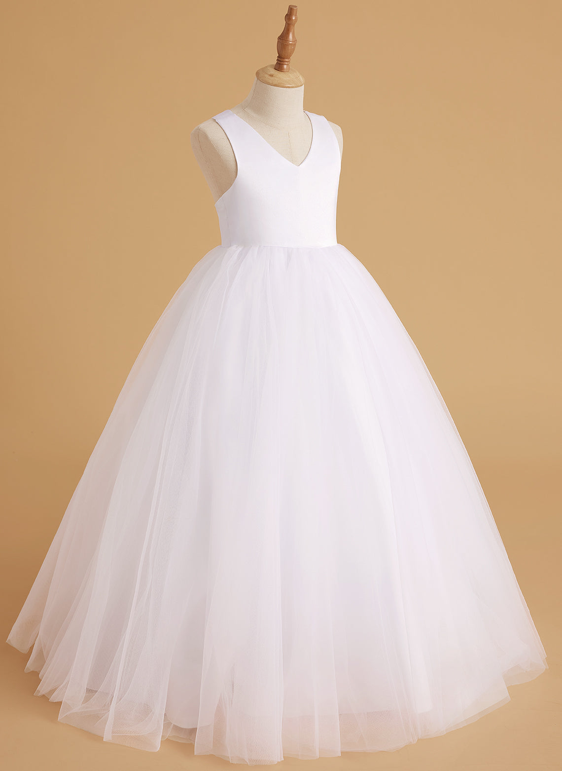 Vestido de niña de las flores clásico de corte en A sin mangas en satén y tul