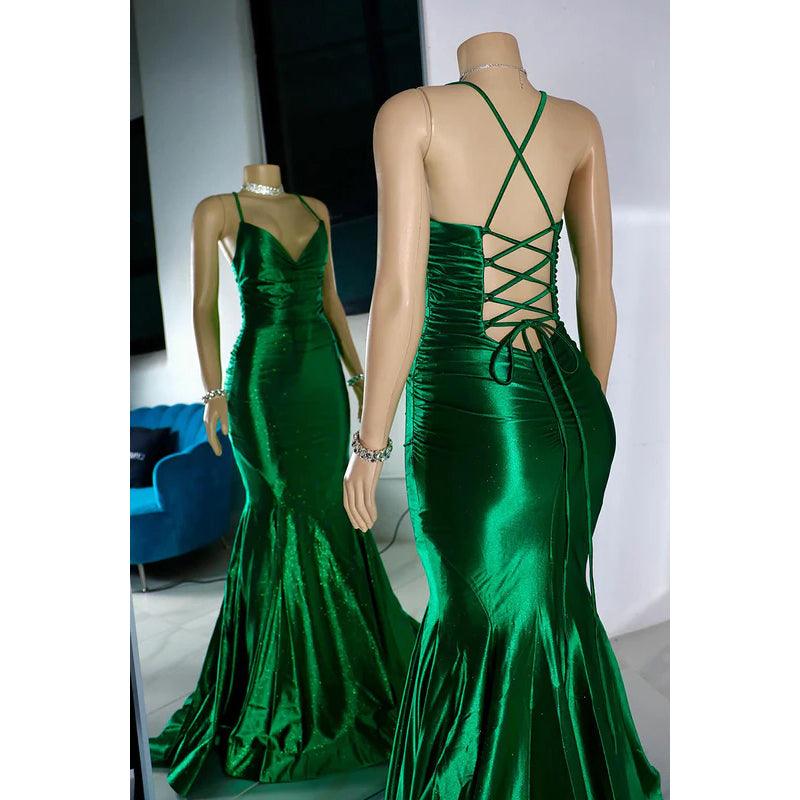 Vestido de fiesta sexy y atractivo de corte trompeta/sirena con tirantes cruzados, volantes y escote en V