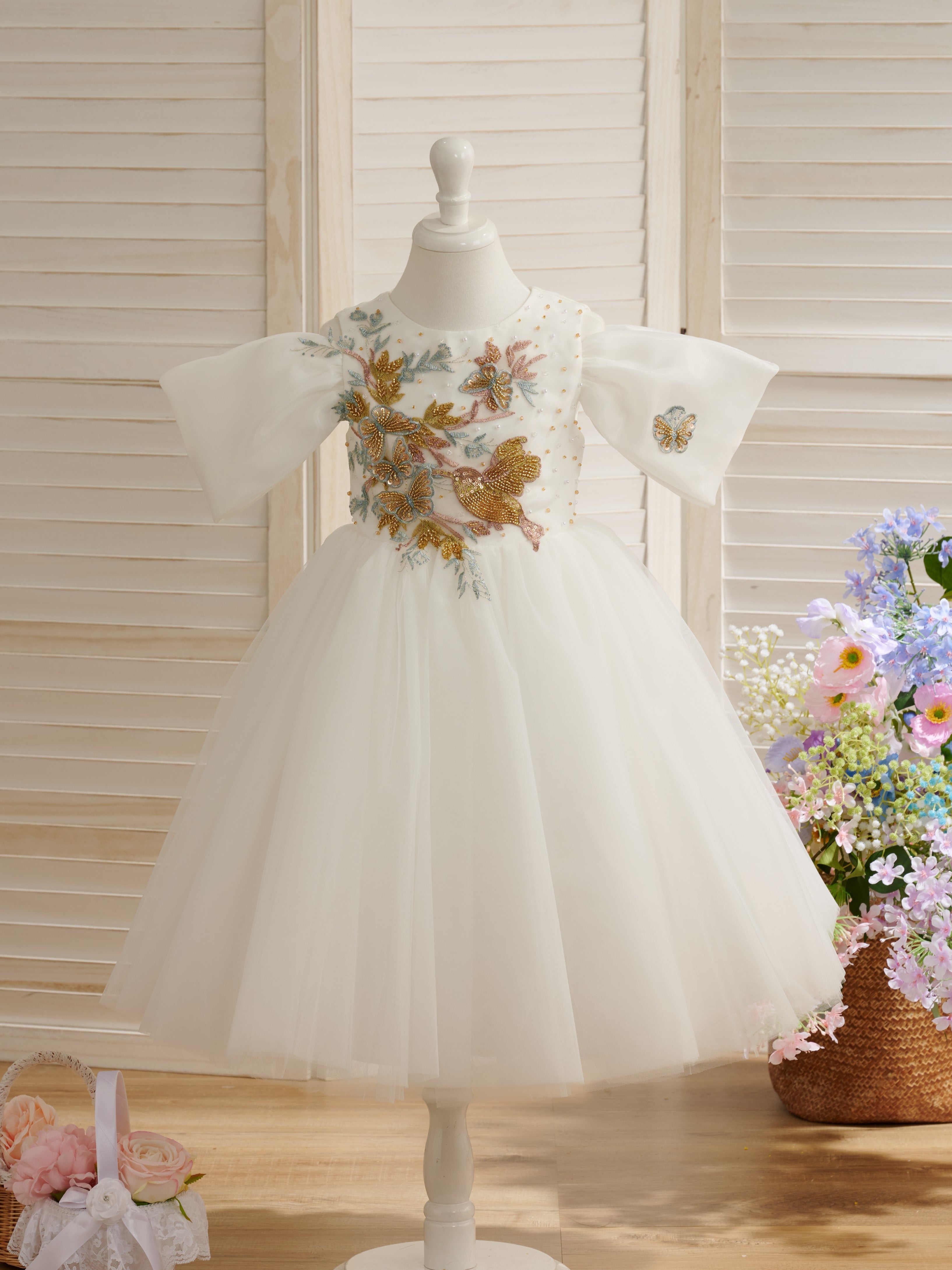 Vestido de niña de las flores de tul y organza hasta la rodilla