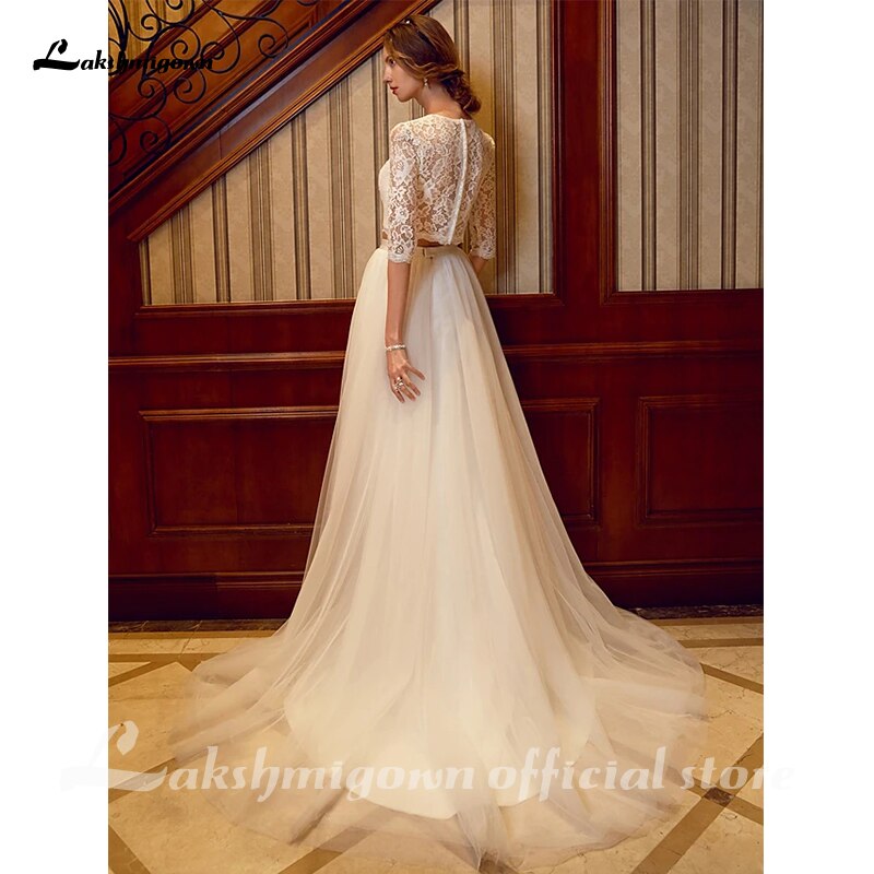 Nombre de la marca: lakshmigown Imágenes reales: Sí Escote: Cuello redondo Largo de manga (cm): media Tela del vestido de novia: organza y tul Tren: Tren de la Corte Para mujeres embarazadas: Sí Largo del vestido: hasta el suelo Diseño de la espalda: cremallera Tipo de artículo: Vestidos de novia Estilo de manga: Regular Sujetador incorporado: Sí is_customized: Sí Decoración: Encaje Elemento de moda: ilusión Número de modelo: 82212 Cintura: Factores naturales Silueta: línea A Mercado: Vestido de novia. vestido de boda Color: Blanco marfil o hecho a medida según nuestra carta de colores Talla grande: talla grande o talla personalizada abiti da sposa: trouwjurk / gelinlik estilo: vestidos de fiesta de boda Temporada: Primavera, Verano, Otoño e Invierno Fiesta de bodas Lugares para bodas: Salón, Iglesia, Jardín/Exterior