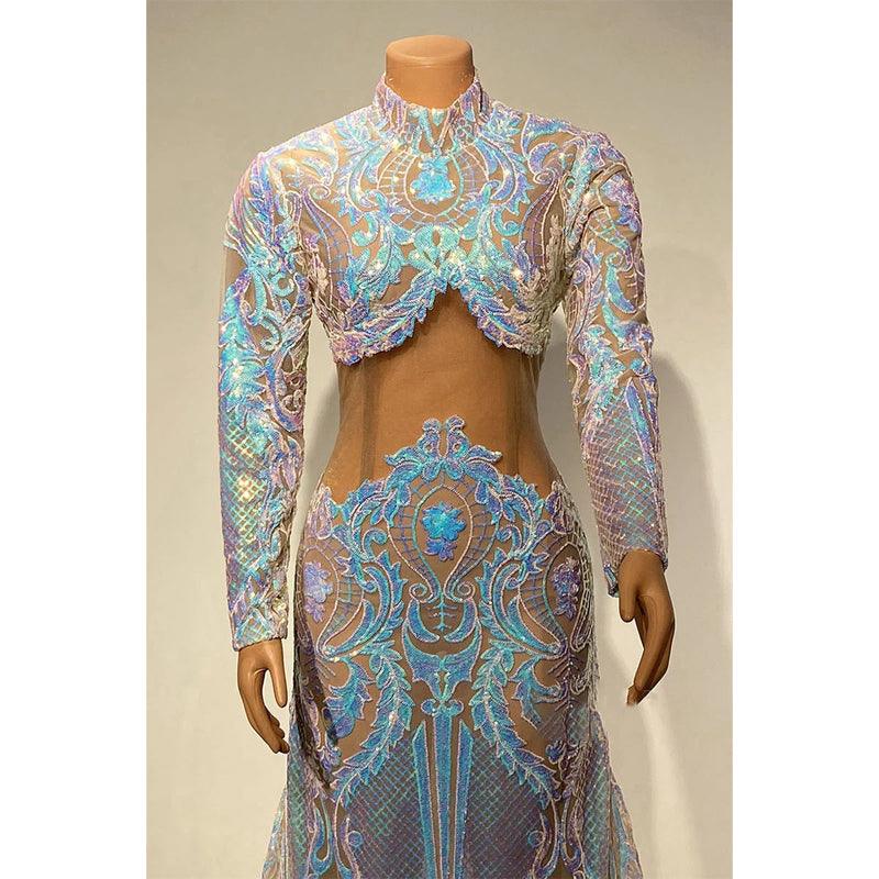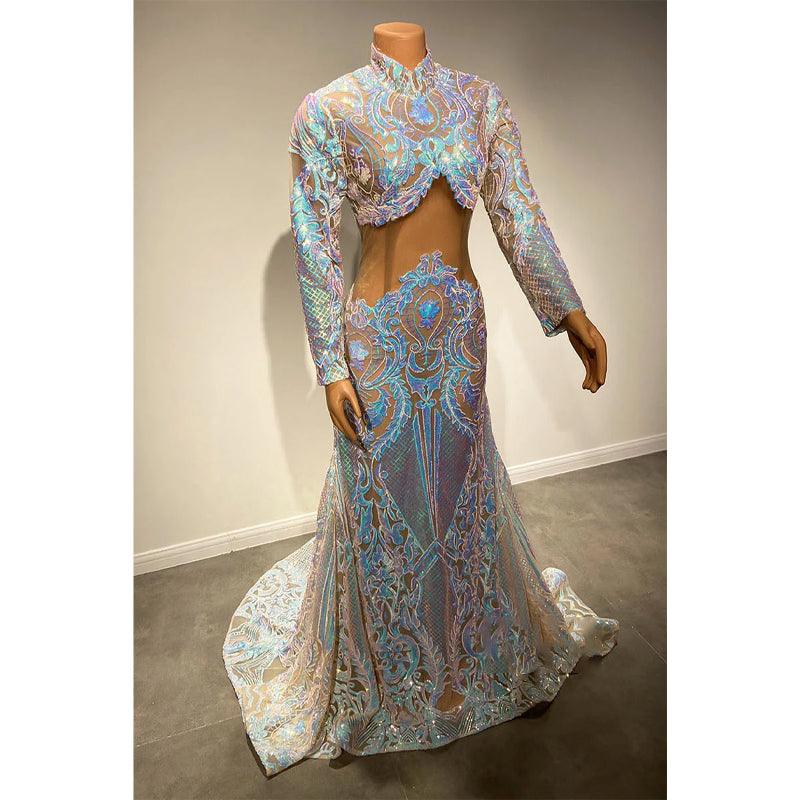 Vestido de fiesta de sirena con apliques de lentejuelas y cuello alto único para chica negra
