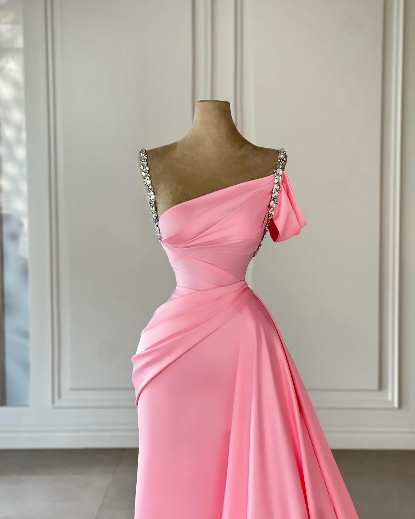 Experimenta la elegancia con este vestido rosa de fiesta vintage, de satén, sin mangas y con hombros descubiertos. Los detalles de pedrería le dan un toque de brillo a su diseño clásico. Luce tus hombros con el escote que los deja al descubierto y disfruta de la silueta estilizada de su corte recto. Perfecto para una fiesta de graduación o un evento especial.