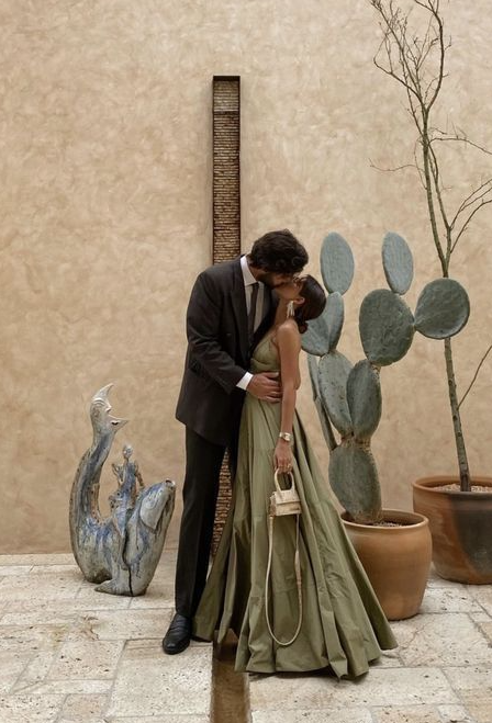Vestido de fiesta vintage verde con tirantes finos, escote en V y corte en A Y7991