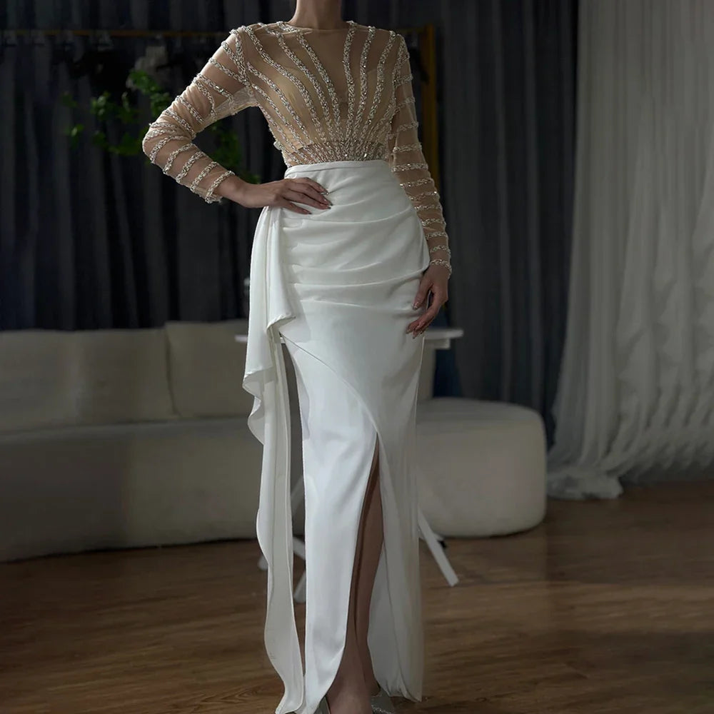 Haz que tu día especial sea aún más especial con este elegante vestido de novia de encaje color marfil con corte sirena. Con un escote impactante y una falda de estilo bohemio, este exquisito vestido de novia para bodas en la playa sin duda...