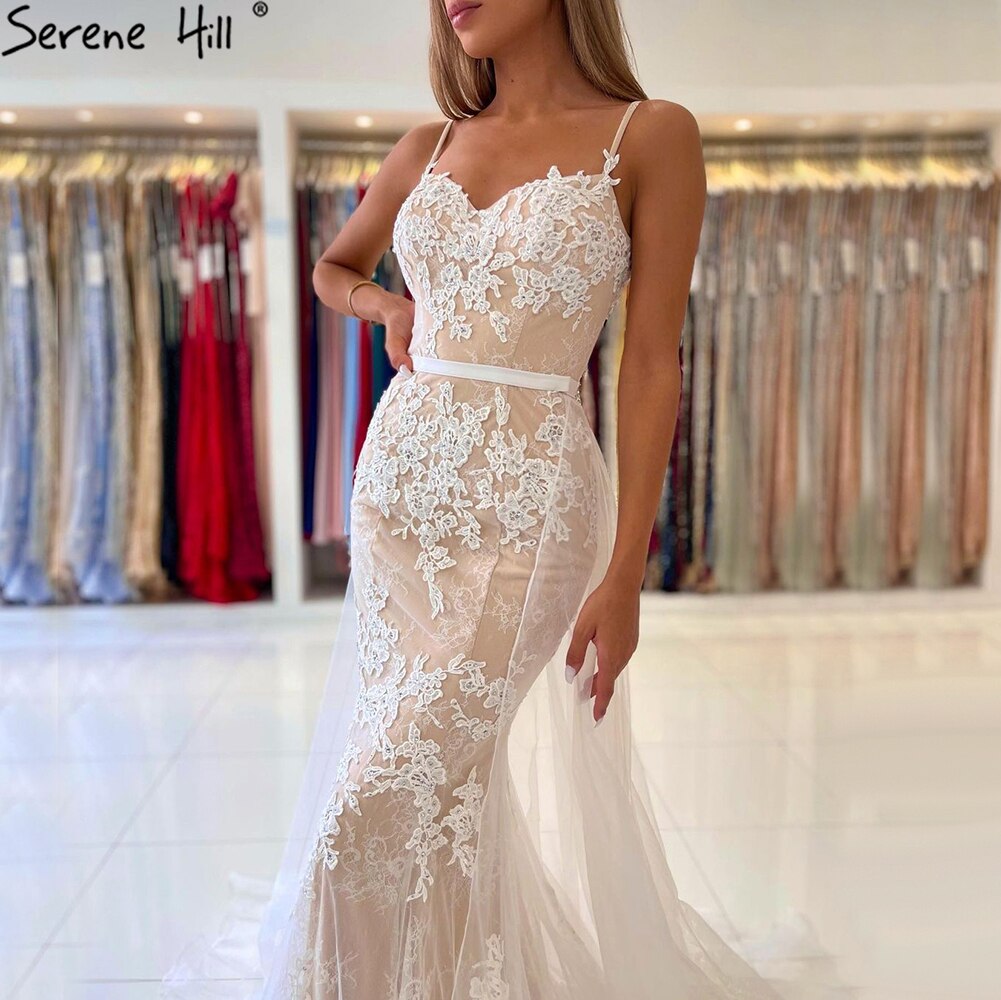 Vestido de noche blanco nude con tirantes finos, elegante vestido de sirena con encaje para mujer, fiesta LA60731A
