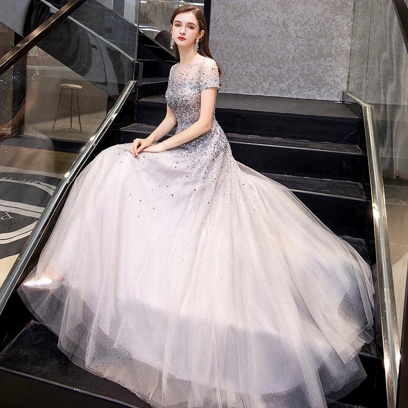 Vestido de noche de corte A para mujer, vestido de fiesta sexy sin mangas con cuentas, vestido formal para mujer