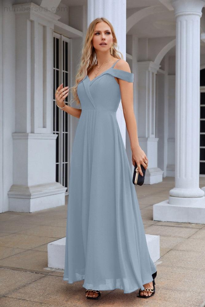 Vestido de noche de dama de honor con tirantes finos y hombros descubiertos para mujer 28093