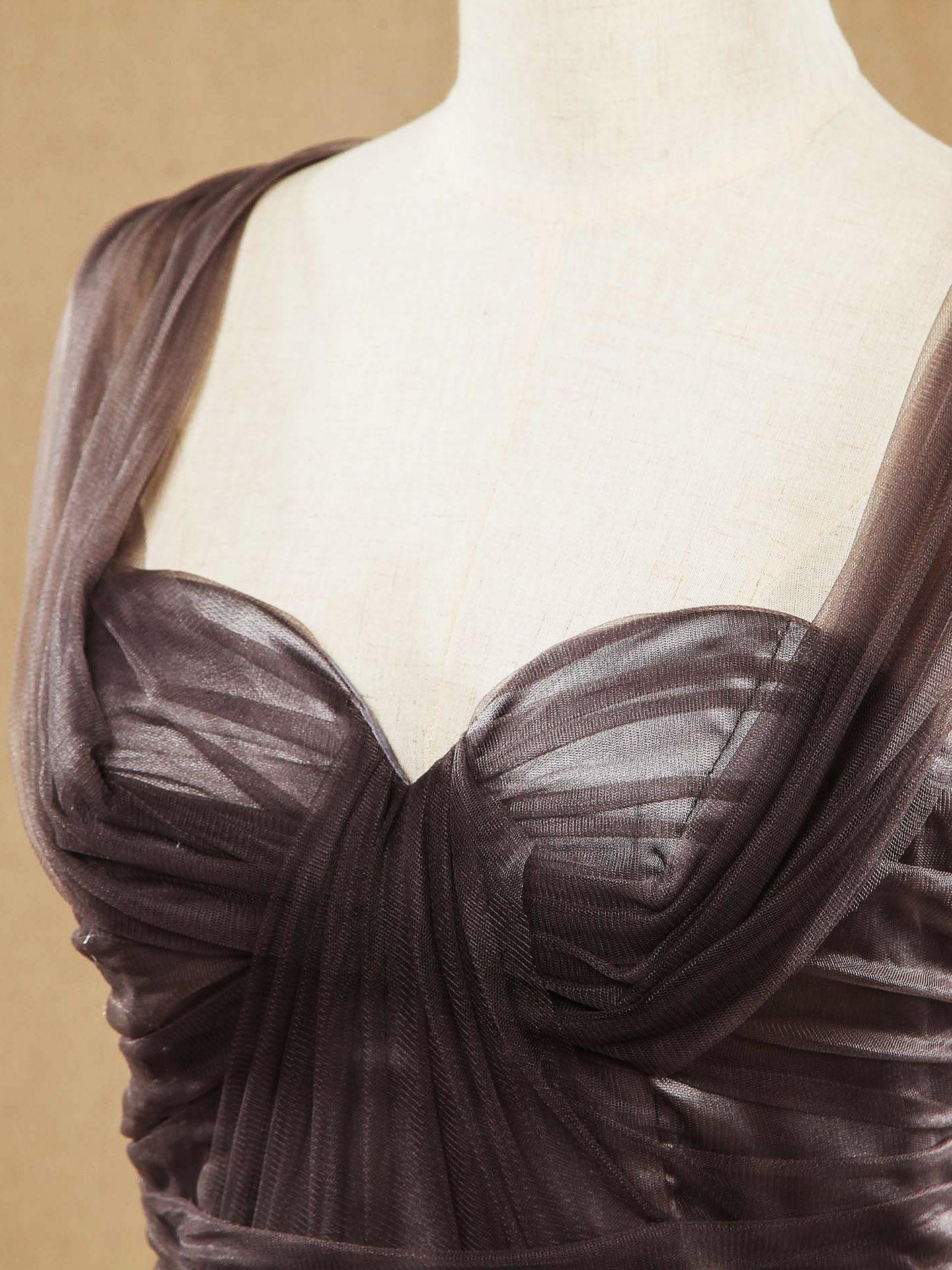 1. Informations sur l'article : Robes de demoiselle d'honneur en tulle longueur genou, coupe trapèze, bretelles, décolleté en cœur, dos ouvert avec fronces, fabriquées sur commande.
