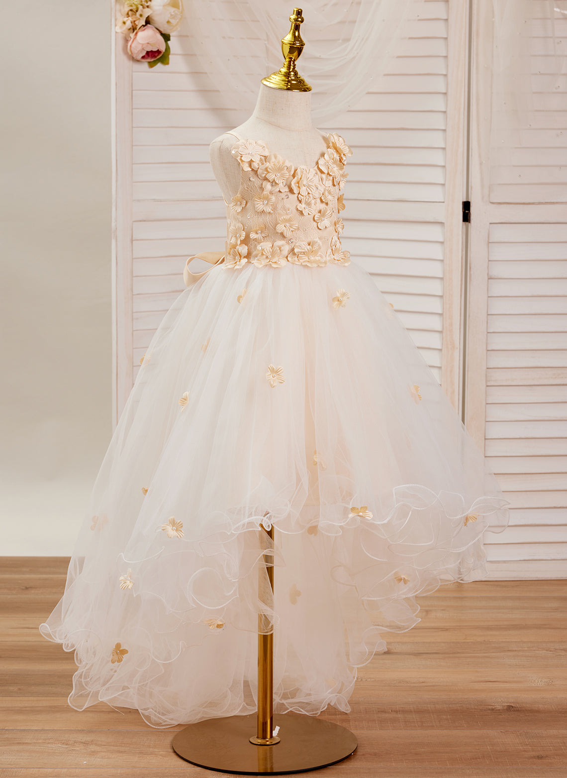 Robe asymétrique en tulle ivoire de coupe trapèze (010220938)