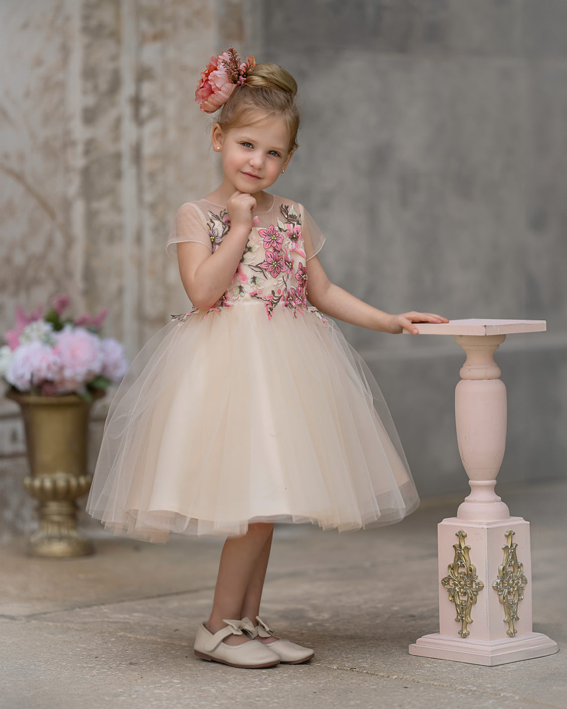 Robe de demoiselle d'honneur trapèze en tulle, longueur genou