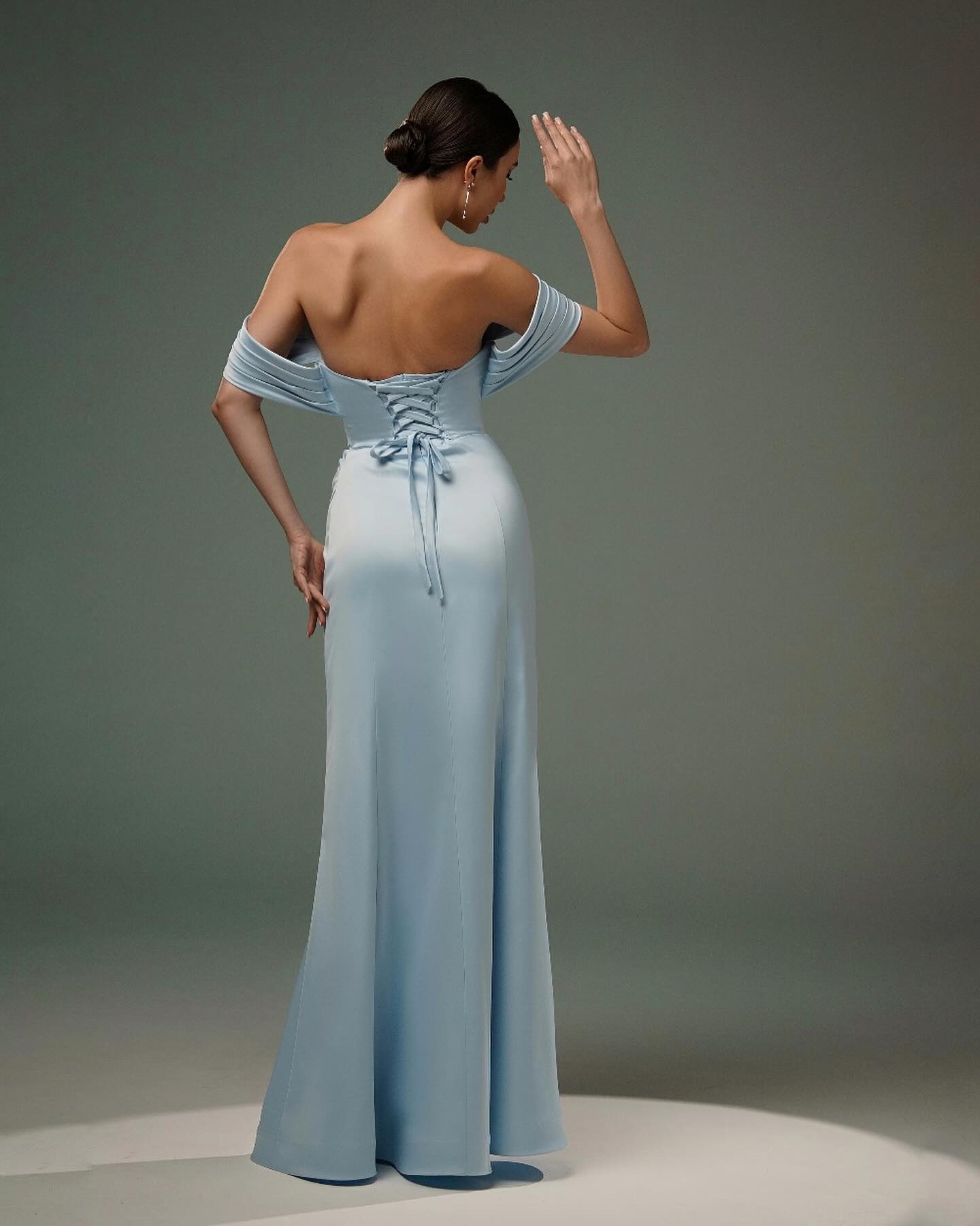 Cette superbe robe de bal trapèze en satin arbore une élégante coupe épaules dénudées et une silhouette trapèze flatteuse. Son design sans manches et sa fente sur le devant lui confèrent une touche de sophistication, idéale pour un bal de fin d'année ou toute autre occasion formelle. Confectionnée en satin de haute qualité, cette robe est à la fois confortable et élégante.