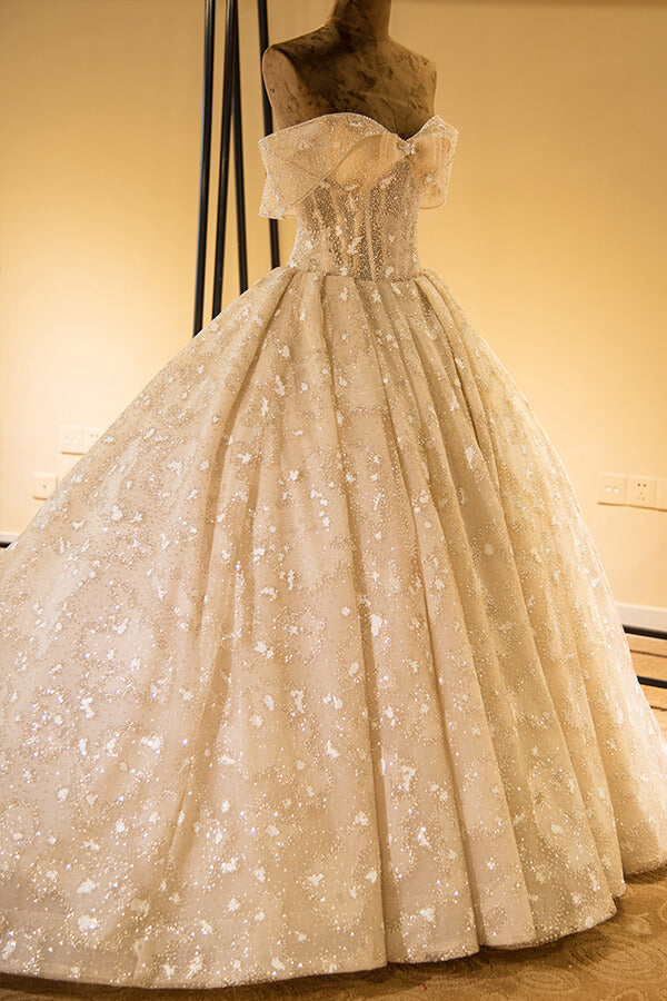 Magnifique robe de mariée bustier à manches courtes et applications de dentelle