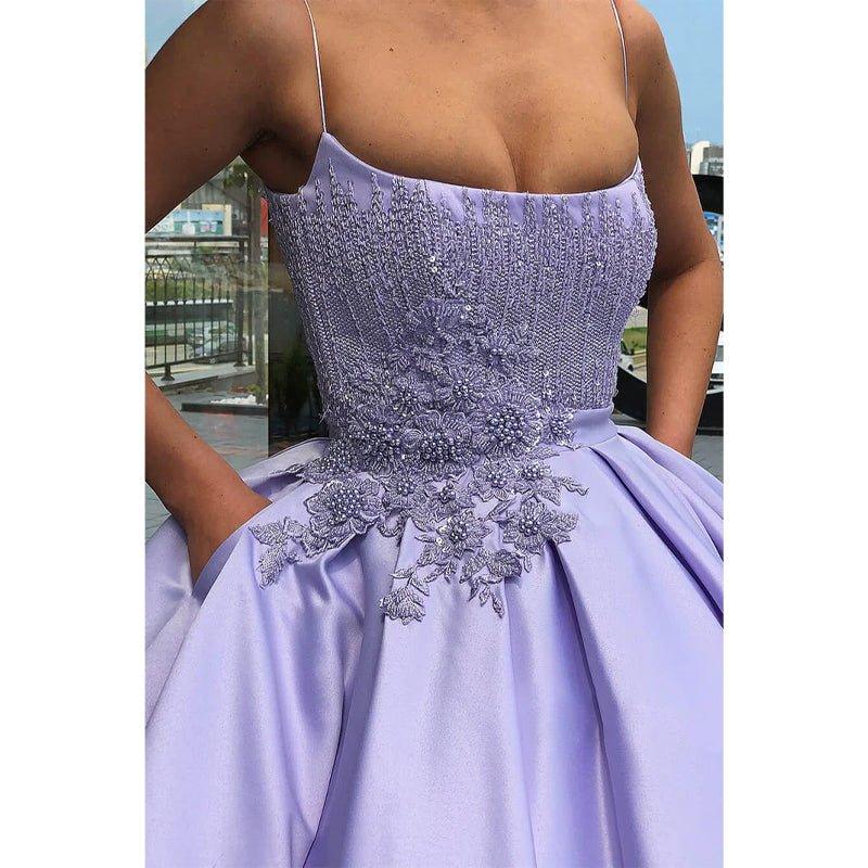 Robe de bal lilas en satin avec appliques, élégante et longue, décolletée plongeante, robe de soirée formelle