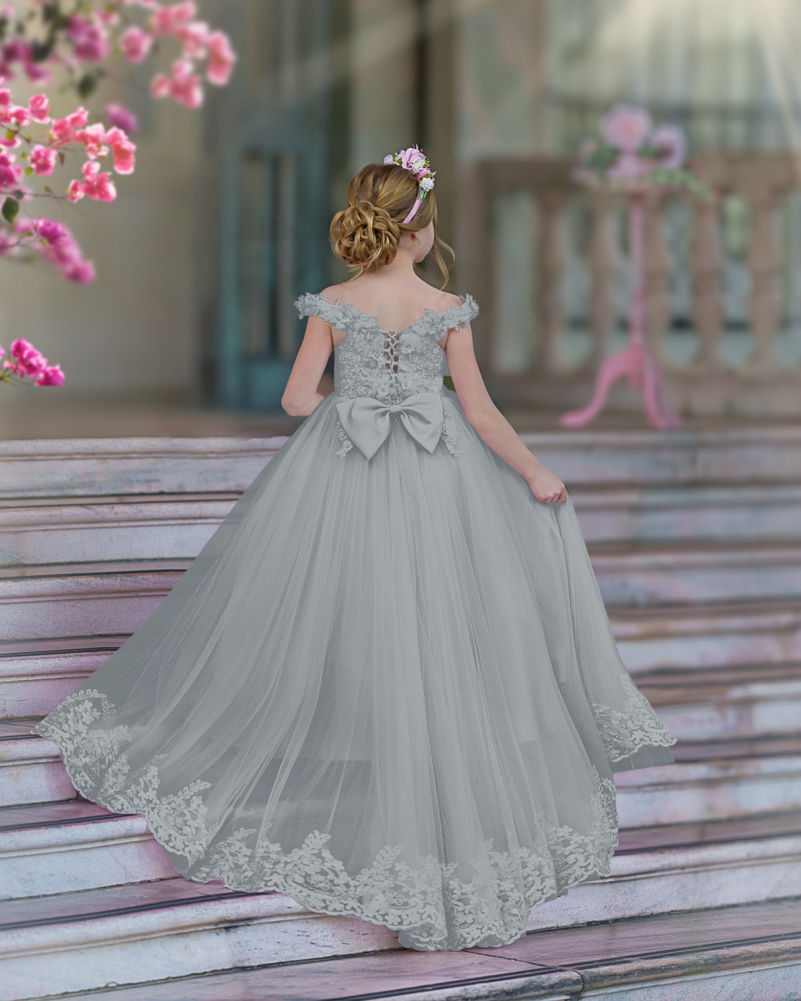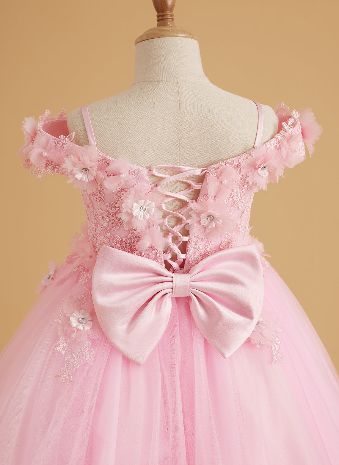 Robe de bal/robe de princesse en dentelle avec traîne rose pour anniversaire