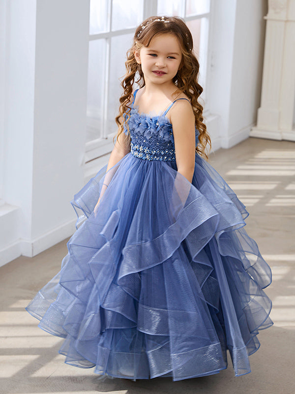 Robe de demoiselle d'honneur bleu ardoise, coupe trapèze, sans manches, en tulle, style princesse