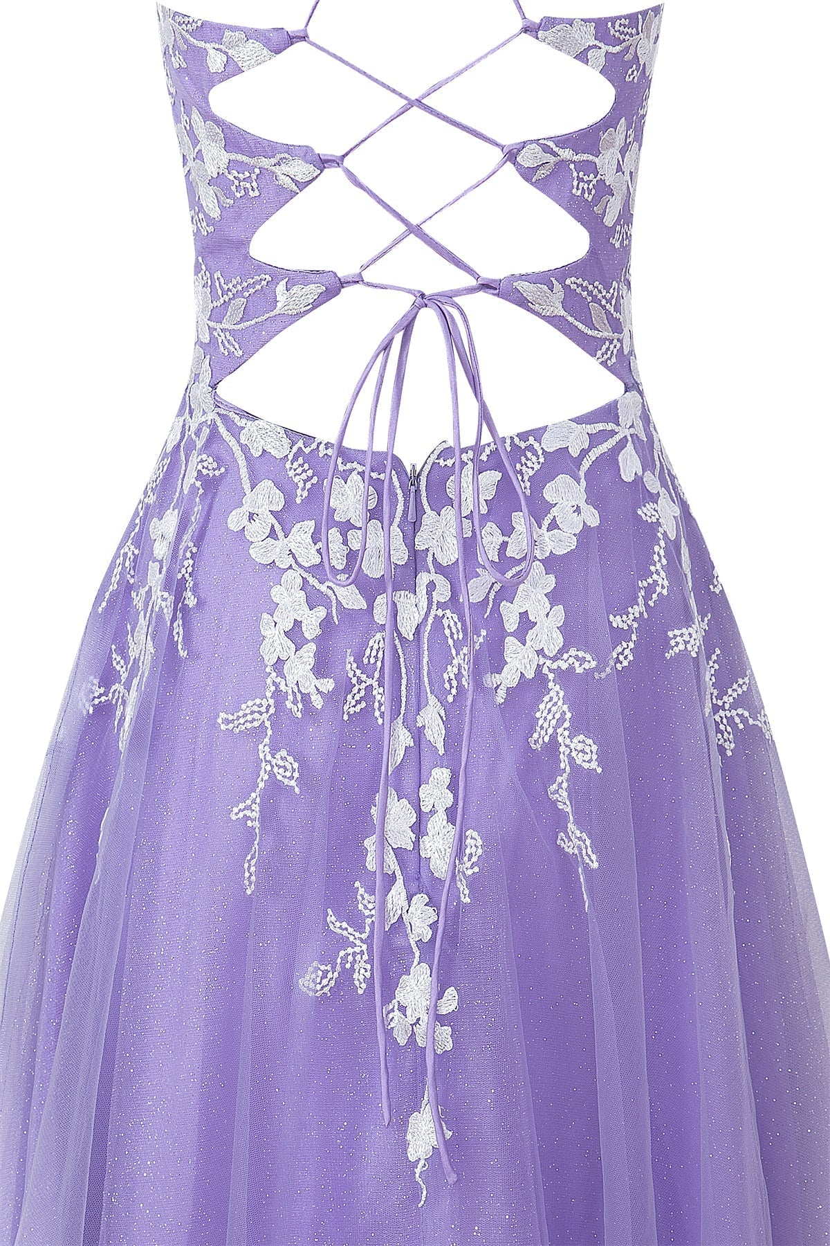 Rayonnez de beauté avec la robe Bella, notre robe de bal lilas à fines bretelles et tulle pailleté. Sa coupe trapèze flatte toutes les silhouettes et vous promet un charme irrésistible. Le tulle pailleté apporte une touche d'éclat qui attirera tous les regards. De son décolleté en V à fines bretelles à son dos croisé zippé, cette robe regorge de détails raffinés qui subliment son allure. Les applications de dentelle délicatement disposées ajoutent une touche d'élégance supplémentaire. N'attendez plus ! La robe Bella est la robe parfaite pour votre bal de fin d'année !