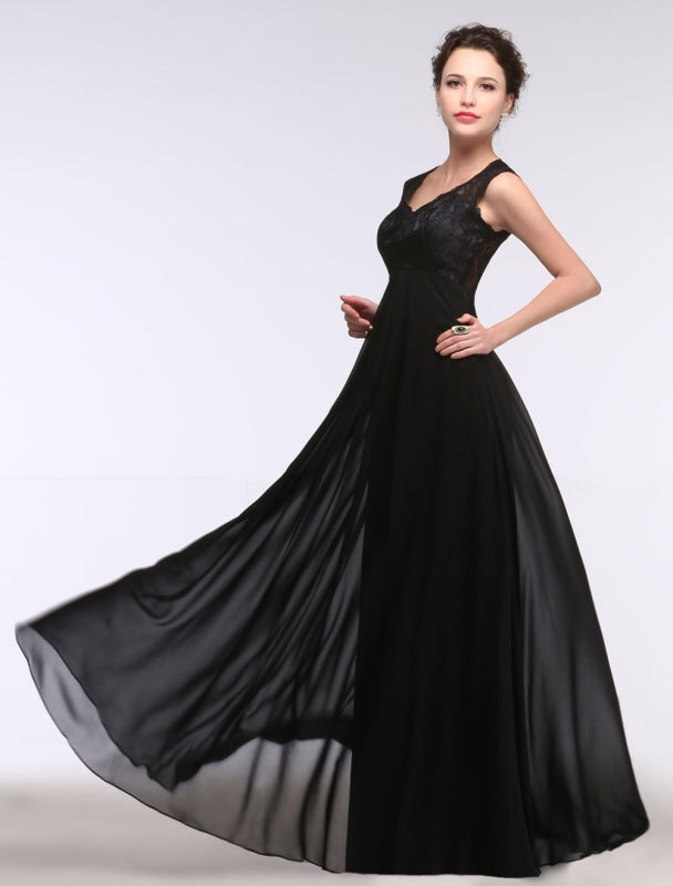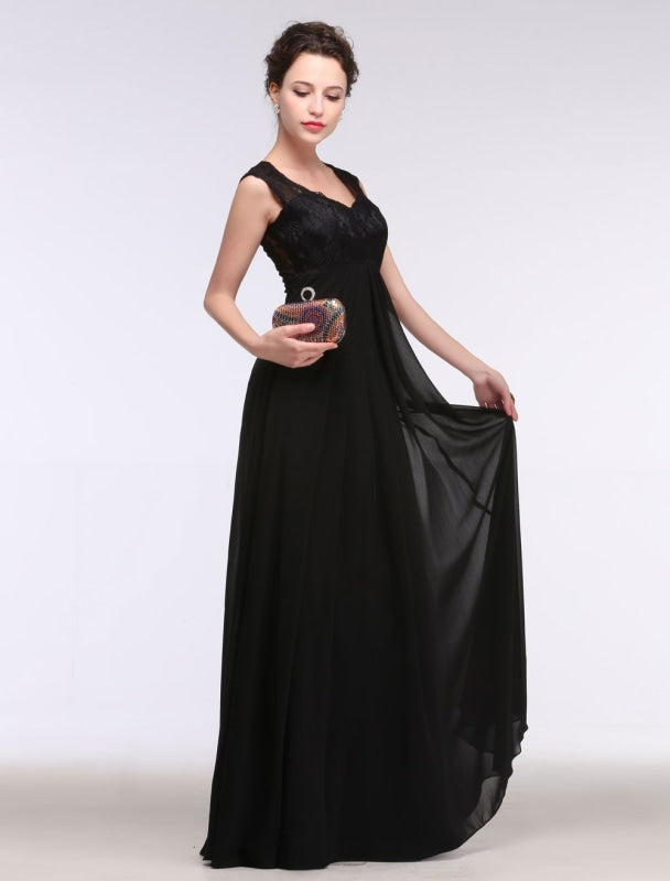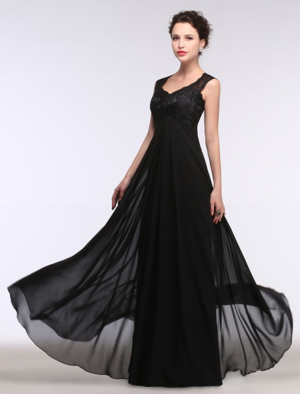 Robe de soirée noire en dentelle, robe maxi de fête à décolleté cœur, robe trapèze sans manches, robe de mère