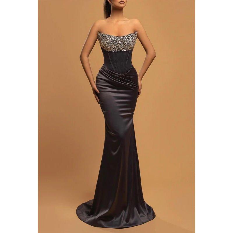 Robe de bal de fin d'année chic et moderne, sans manches, épaules dénudées et froncée