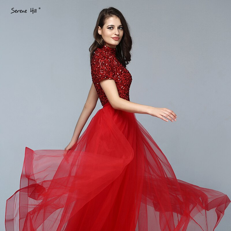 Robe de soirée rouge de luxe à manches courtes et cristaux, en solde, sans retour ni remboursement, modèle Dubaï, LA60793, 2025