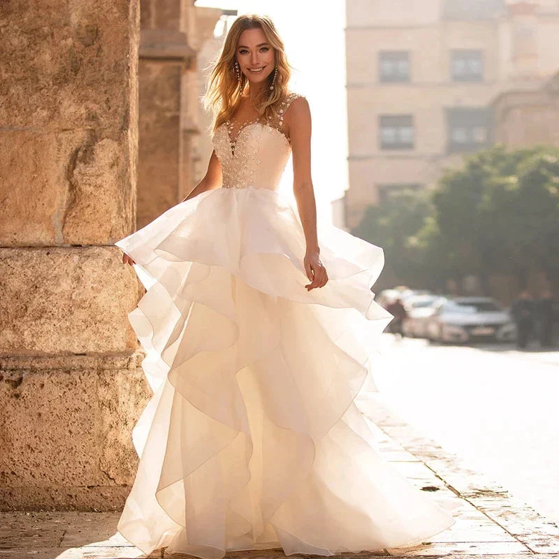Sublimez votre journée avec cette élégante robe de mariée sirène en dentelle ivoire. Son décolleté saisissant et sa jupe bohème lui confèrent un style raffiné. Cette robe de plage, au design exquis, ne manquera pas de faire sensation. Apportez une touche de romantisme à...