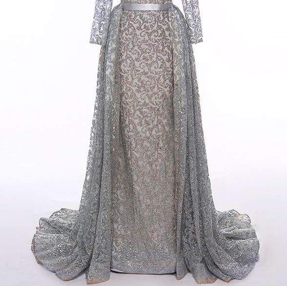 Nom de marque : SERENE HILL Encolure : Haute Train : Train de la Cour Images réelles : Oui Matière : Soie.Polyester Décoration : écharpes Silhouette : Trompette / Sirène Longueur des manches (cm) : Longue Longueur des robes : Longueur au sol Type de tissu : Tulle Tour de taille : Empire is_customized: Oui Soutien-gorge intégré : Oui Style de manche : régulier Numéro de modèle : LA6326 Élément de mode : Vintage Type d'article : Robes de soirée Occasion : Soirée formelle