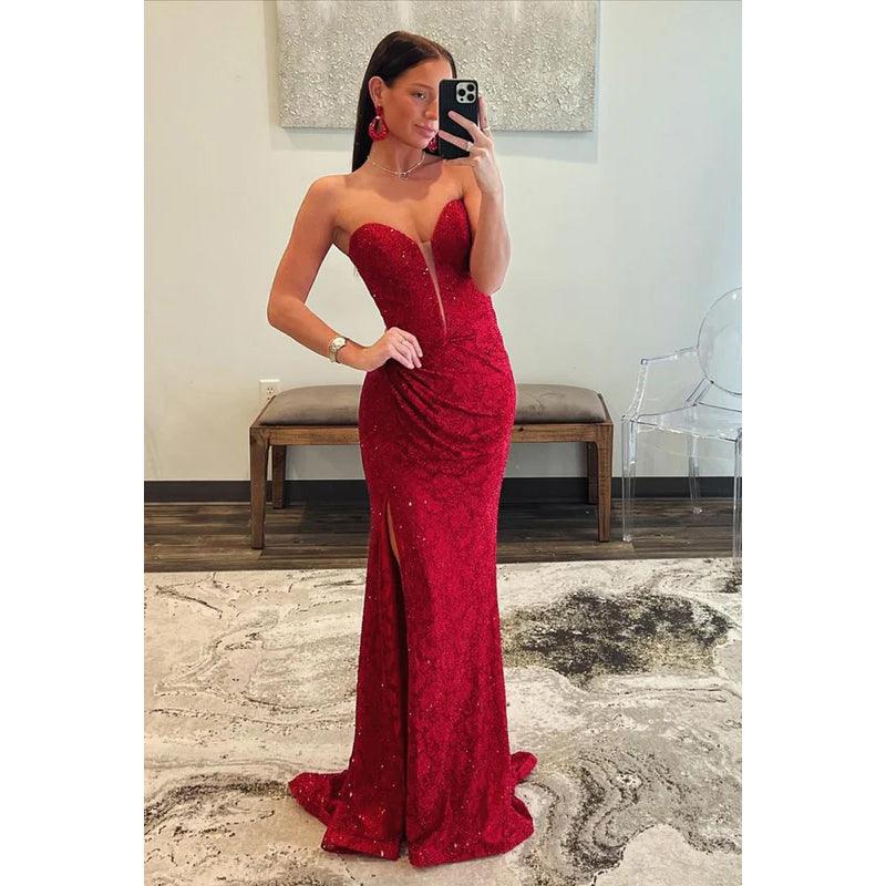 Robe de bal trompette scintillante, glamour et spectaculaire, décolleté en V profond, sans manches