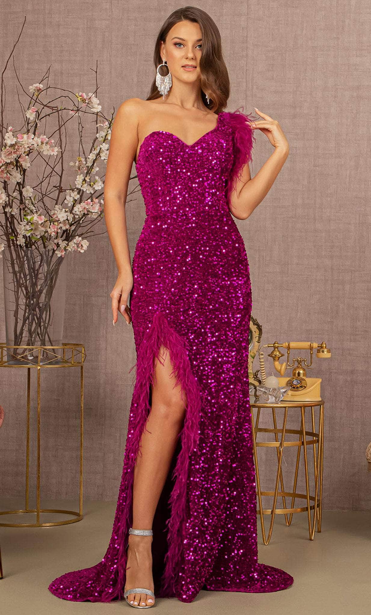 Faites sensation en enfilant cette ravissante robe GL3154 de GLS by Gloria. Son décolleté asymétrique et son corsage ajusté à une manche sont sublimés par des sequins scintillants et des détails en plumes sur la manche asymétrique et la fente. Le dos, fermé par une fermeture éclair, dévoile un décolleté mi-haut des plus séduisants. À partir de la taille, la silhouette fourreau s'évase, avec une fente vertigineuse et une traîne élégante pour une touche de glamour supplémentaire. Avec cette pièce d'exception signée GL3154 de GLS by Gloria, vous êtes assurée de faire de votre événement un moment inoubliable. Les mannequins portent les coloris magenta et marine.