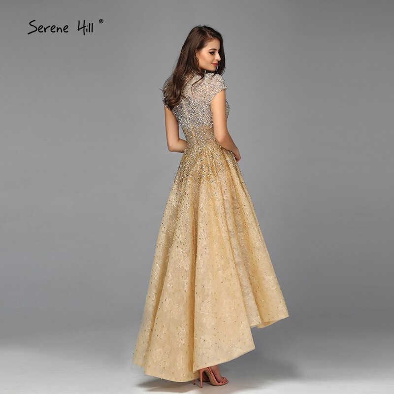 Robe de soirée asymétrique luxueuse dorée à col haut, 2025, perles, paillettes, sans manches, LA60757