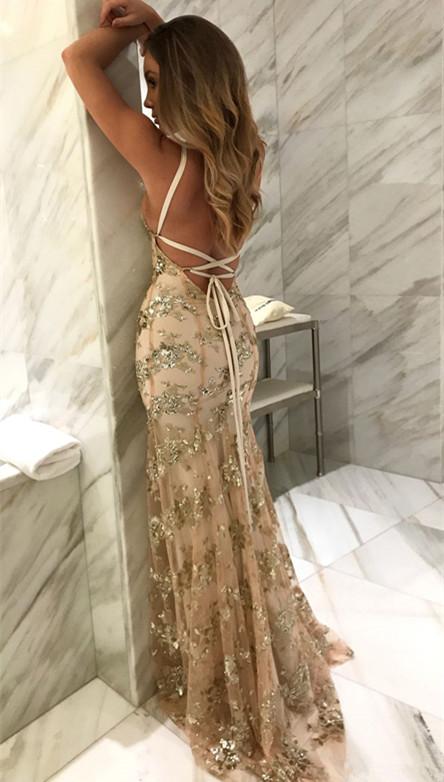 Magnifiques robes de bal longues sirène en tulle à fines bretelles et dentelle, col en V