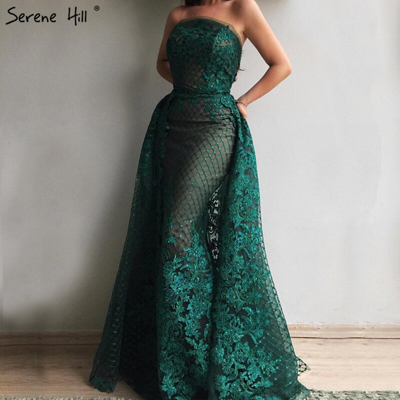 Robe de soirée sirène sexy verte à épaules dénudées, en solde, sans retour ni remboursement, 2025, avec appliques et paillettes, luxueuse robe de soirée vintage, LA6361
