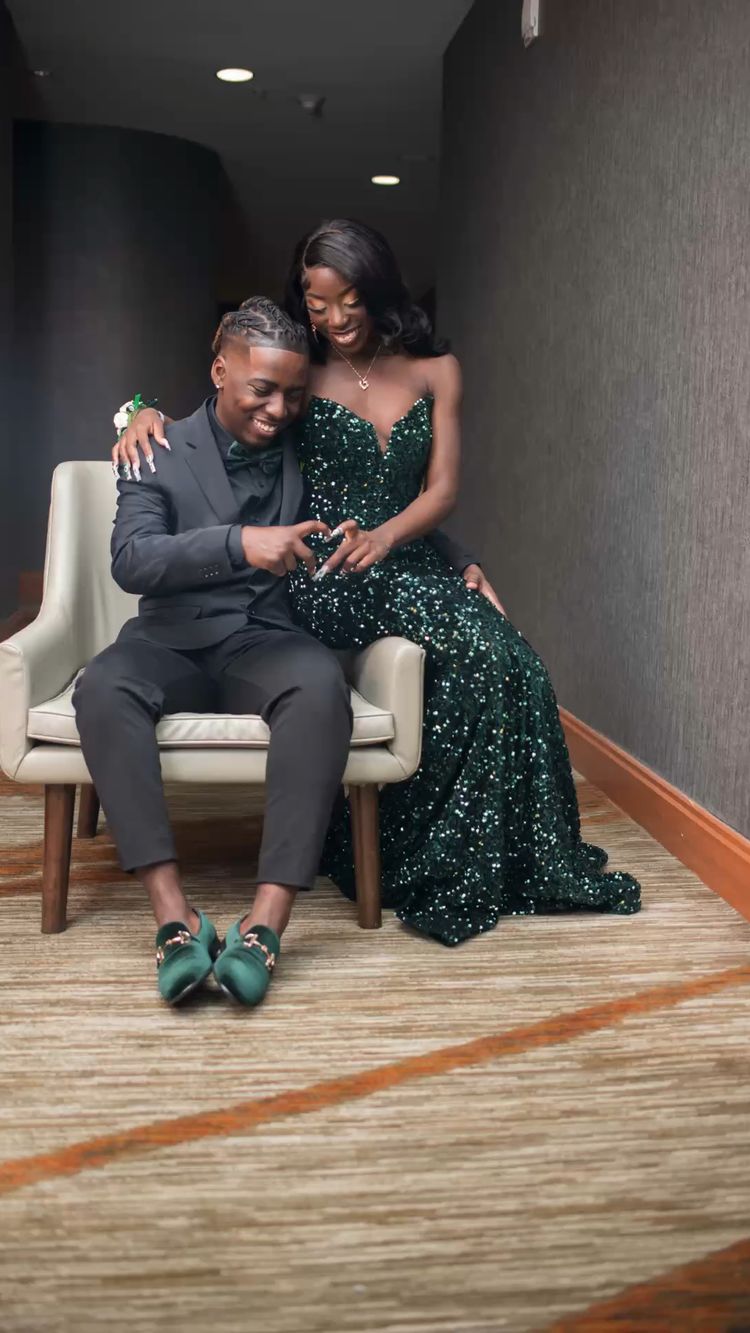 Robe de bal longue à sequins verts, style sirène, pour les élèves de terminale (Y120)